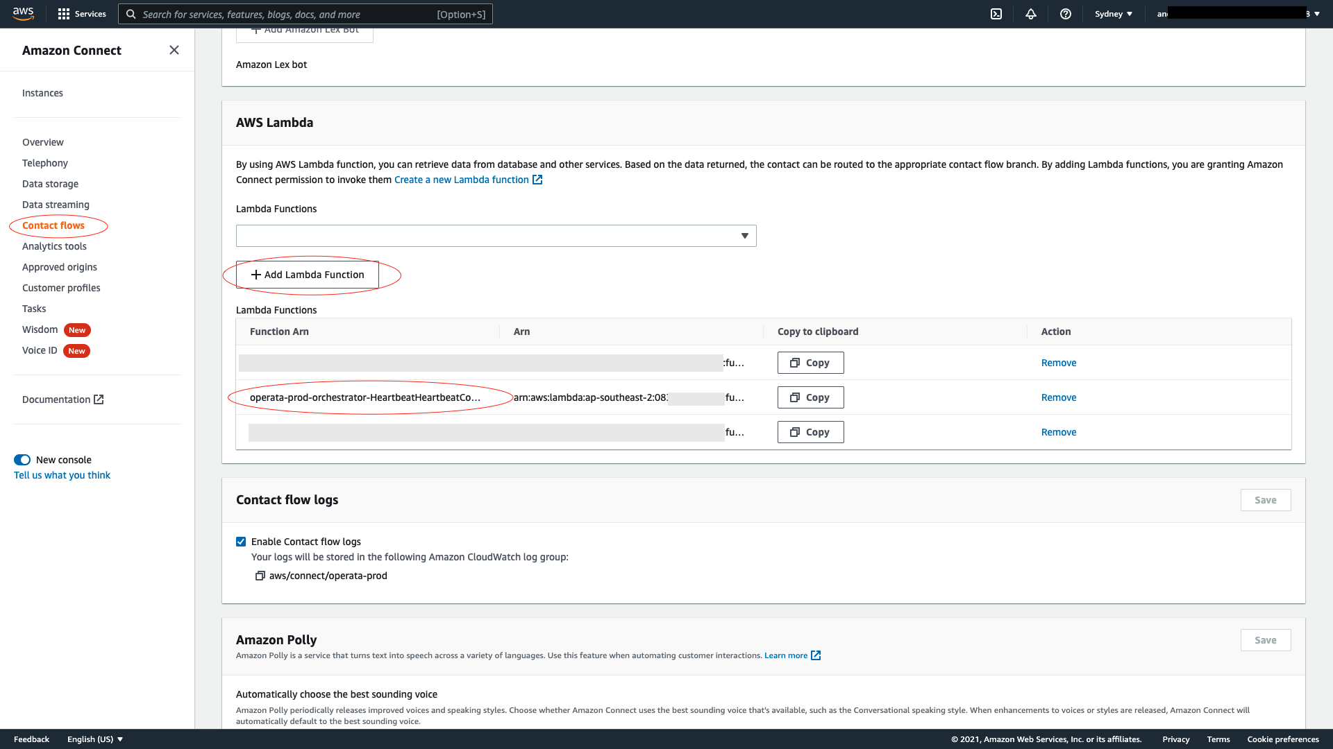 Now associate the Contact Flow Lambda created by the CloudFormation stack to the contact-flow you have just created.